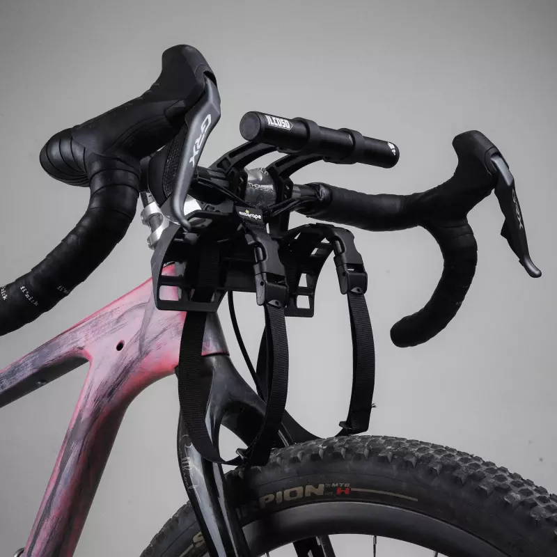 Comme pour la sacoche de selle, il peut être utile d’apporter un peu de maintien à celle du guidon: c’est le rôle du stabilisateur. On sera la plupart du temps sur une solution type harnais. Et en plus de t’apporter de la stabilité cela va éloigner la sacoche des câbles qui pourront alors fonctionner de manière optimale (ce qui n’est pas forcément le cas lorsqu’ils se retrouvent coincés entre la sacoche et le guidon).